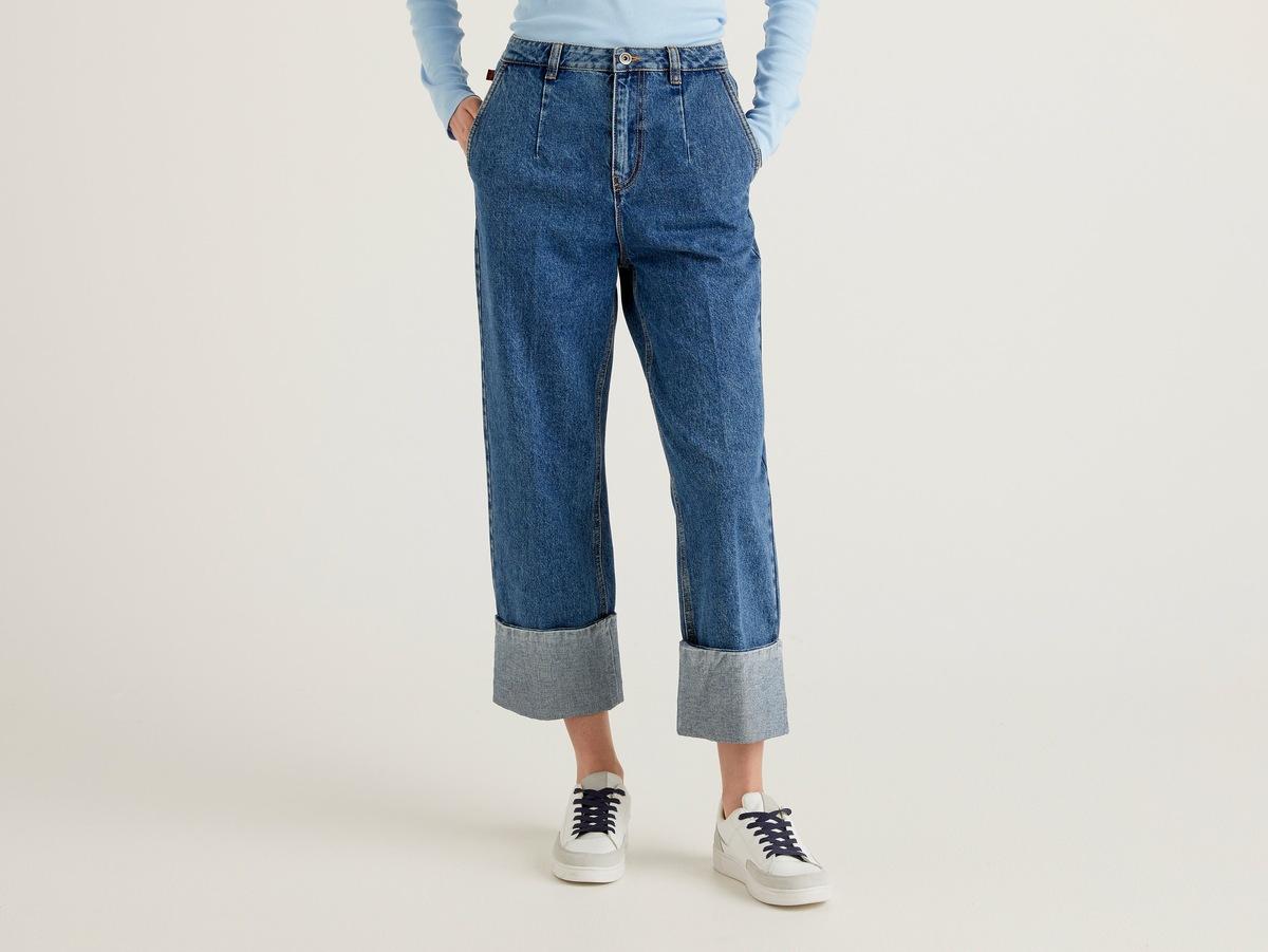 В этом сезоне их однозначно стоит забыть. Несмотря на массовость ношения таких джинсов, их фишка так и не была раскрыта. Ведь визуально подвороты укорачивают ноги. В межсезонье они вообще выглядели особенно странно, когда надевались на ботильоны или сапоги. Тренд не спасла даже цветная окантовка, сменившая подвороты. К счастью, вновь вернулись джинсы стандартной длины.