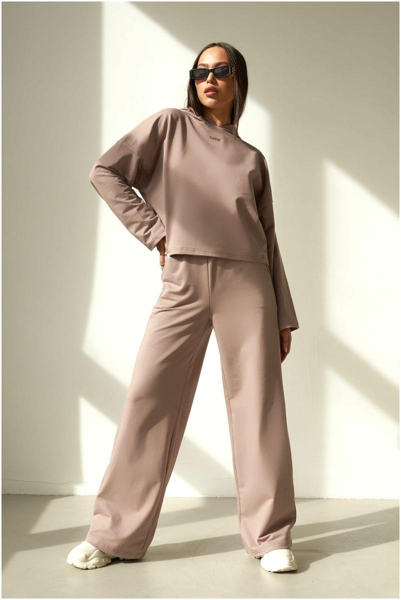 Странная вещь для нового 2025 года. Да, довольно странный тренд, который в прошлом сезоны был в топе. Тем удивительнее, ведь трикотажные костюмы очень непрактичны, так как у них быстро вытягивались колени. Да и отсылка к спортивному костюму делала модниц совершенно неженственными. Также нужно было угадать с фактурой, поскольку объемная вязка только добавляла килограммов.