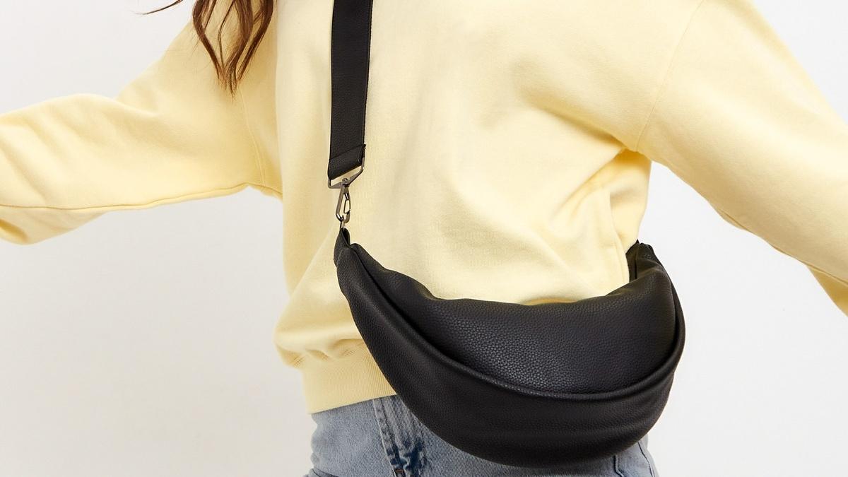 Эти сумки не в тренде уже почти три сезона, тем не менее их продолжают носить. Круглую сумку мягкой формы полюбили за возможность освободить руки и стали носить даже с вечерними платьями. Вначале это смотрелось оригинально и даже вызывающе. Но сегодня они морально устарели. А ношение их на талии, только придают ей объем. Меняйте на более изящный вариант.