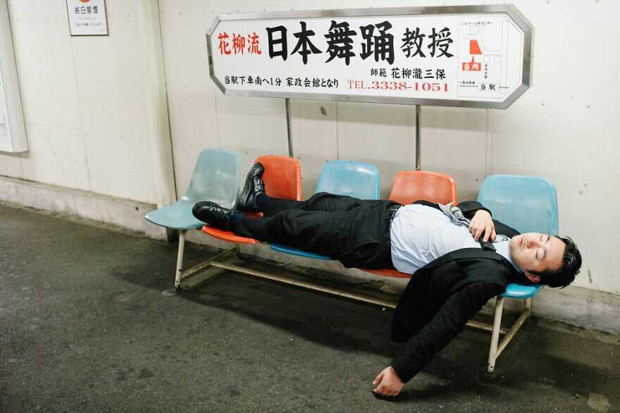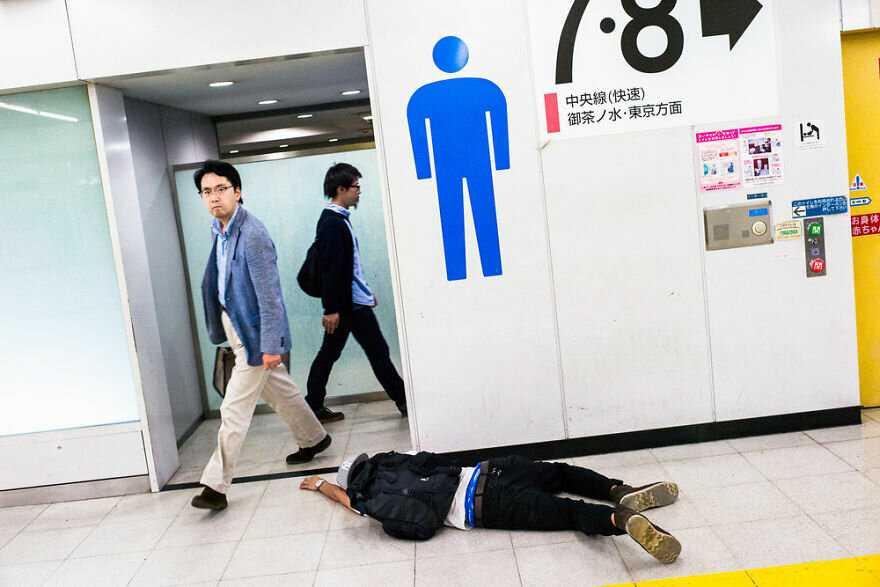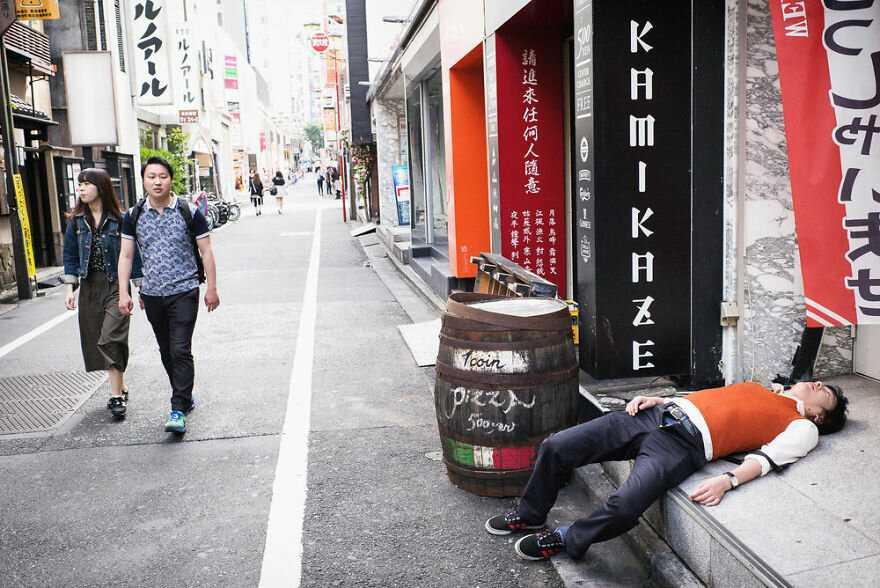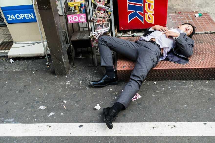 В Японии, возможно, один из самых низких уровней преступности в мире, а также самая высокая ожидаемая продолжительность жизни, но, как вы можете увидеть из приведенных далее уличных снимков примеров чрезмерного потребления алкоголя, это не значит, что японцы не умеют веселиться… хотя, может быть, немного чересчур.