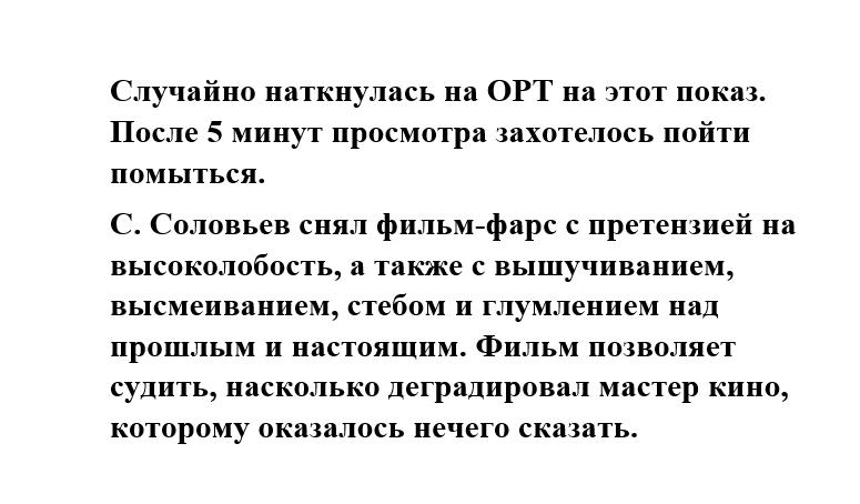 Приведу несколько отзывов о фильме с популярного киноресурса кинотеатр.ру