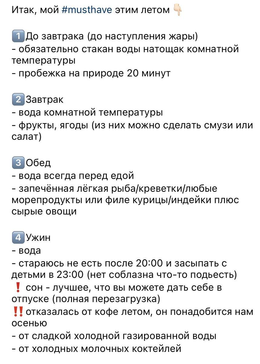 Также она советует съедать по 2 фрукта и 2 овоща в день. А еще выкладывает статьи о полезных свойствах продуктов.