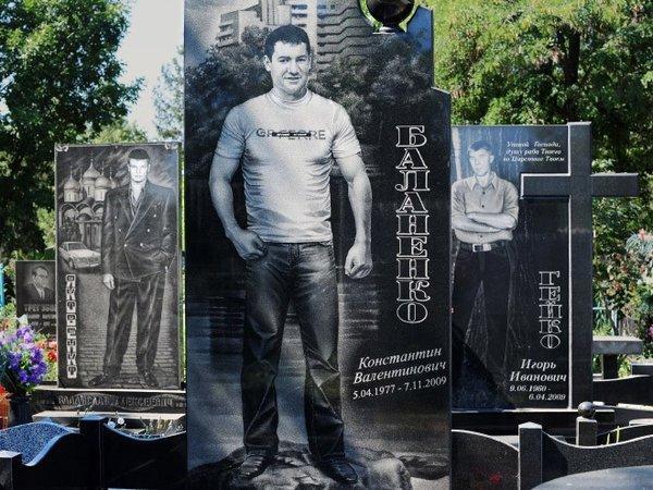 За этими надгробиями стоит интересная история сына Андрея и отца Николая Кравтовых, которые были застрелены в 1996 году. Однажды отец и сын занимались своим преступным бизнесом, когда на них ни с того ни с сего напала конкурирующая мафиозная семья и застрелила их в Volvo, изображенном на надгробии.
