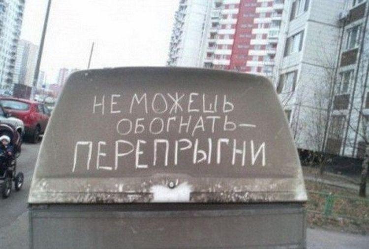 Такие владельцы авто решаются сделать на своей «лошадке» надпись. Чаще всего надписи украшают задние стекла автомобилей. Но бывают и другие варианты. Читая эти перлы, порой даже не знаешь, как на это реагировать.