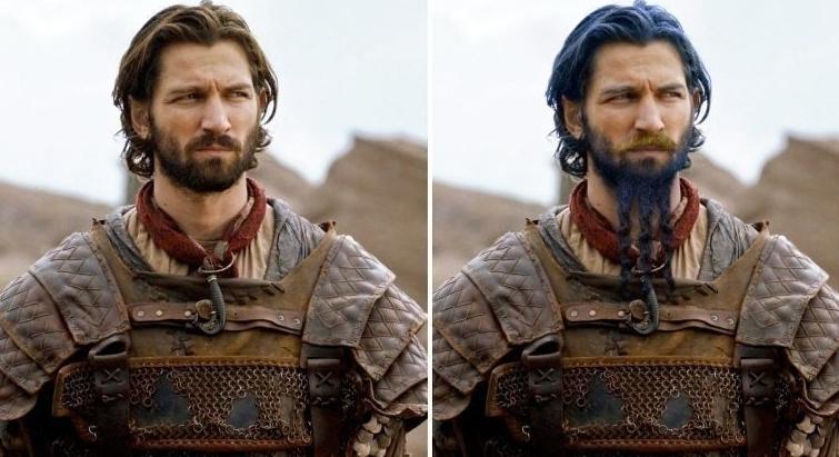 Если опираться на книги, то у Даарио были синие волосы и борода, разделённая на три части. Усы же переливались золотом. В сериале решили оставить естественный цвет волос и не отпускать длинную бороду.