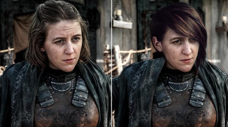 Первая – по книгам у Таргариенов фиолетовые глаза. Создатели «Игры престолов» решили ничего не менять и оставили сериальной Дейенерис серо-зелёный цвет. Вторая деталь – в книгах девушка проходила два раза через огонь, и каждый раз оставалась лысой. На отращивание волос уходило много времени, поэтому ни о каких красивых и пышных причёсках речи не шло. Волосы сериальной Дейенерис обладают иммунитетом к огню.