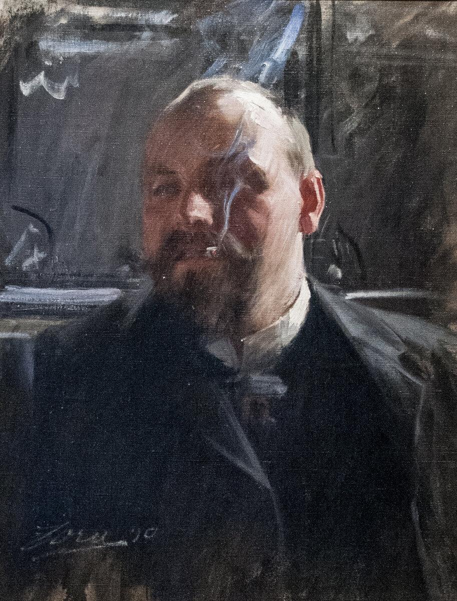 У Цорна был острый глаз на вещи, которые были почти незаметны. На его портрете шведского журналиста Йохана Кристиана изображены тонкие голубые струйки дыма, вьющиеся от зажженной сигареты, росчерки кисти, танцующие по поверхности картины. Эфирные эффекты, подобные этим, были частью уверенной, рискованной техники, которая стала его визитной карточкой, способом раскрыть свой процесс, нанеся относительно немного, четко различимых мазков кистью, которые нельзя было отменить, не начав все сначала.