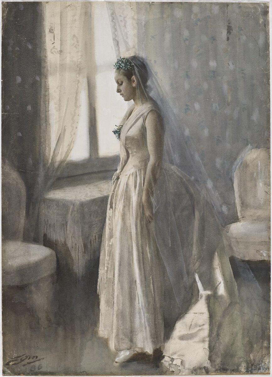 В 1880 году Андерс Цорн показал акварель под названием «В трауре» в Королевской академии изящных искусств в Стокгольме, где он учился в течение пяти лет после того, как подростком покинул ферму бабушки и дедушки в Даларне.