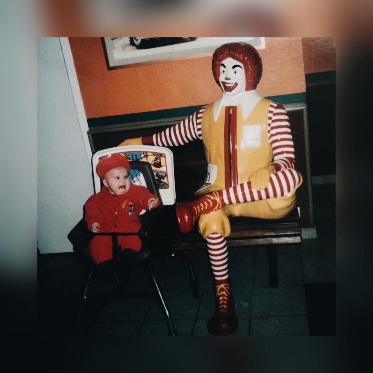 Первое знакомство ребенка с клоуном из McDonald’s — на этом снимке, сделанном в 2001 году, можно увидеть, как маленький ребенок смотрит на клоуна, который стал символом популярной сети ресторанов быстрого питания. Это мгновение отражает удивление, которое часто сопровождает такие встречи.