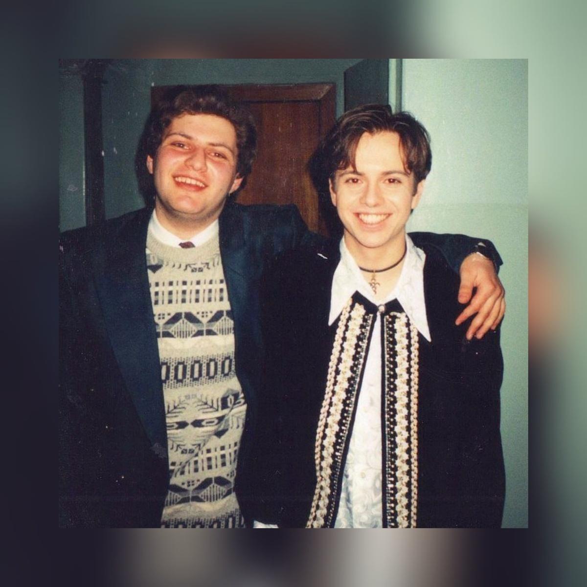 Андрей Губин с директором продюсерского центра «Овация» — этот кадр иллюстрирует сотрудничество между артистом и продюсером, что было важным аспектом музыкальной индустрии 90-х.