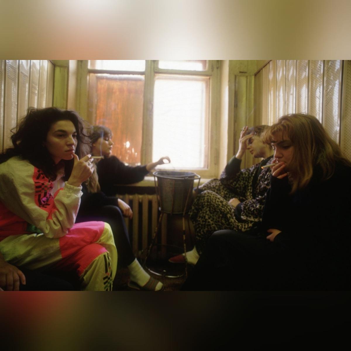 Девушки на перекуре в реабилитационном центре — на фотографии, сделанной в 1993 году, запечатлены молодые женщины, которые, возможно, проходили лечение от зависимости. Этот момент отражает сложные социальные проблемы того времени.