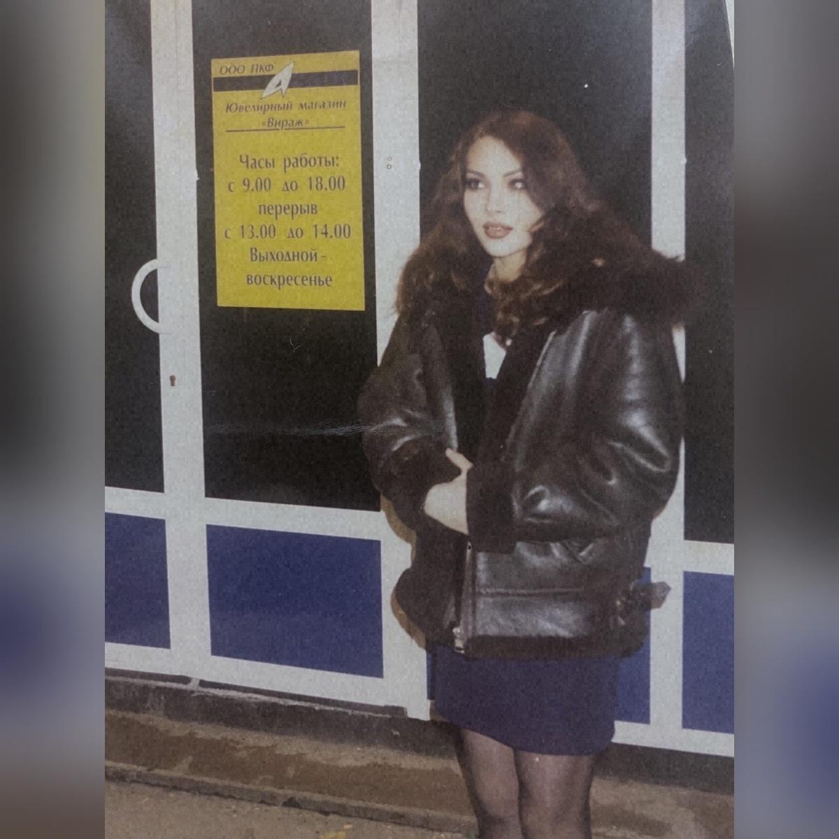 Ирина Салтыкова позирует для фотографа — известная певица 90-х на этом снимке выглядит очаровательно и уверенно, что подчеркивает её статус одной из самых популярных артисток того времени.