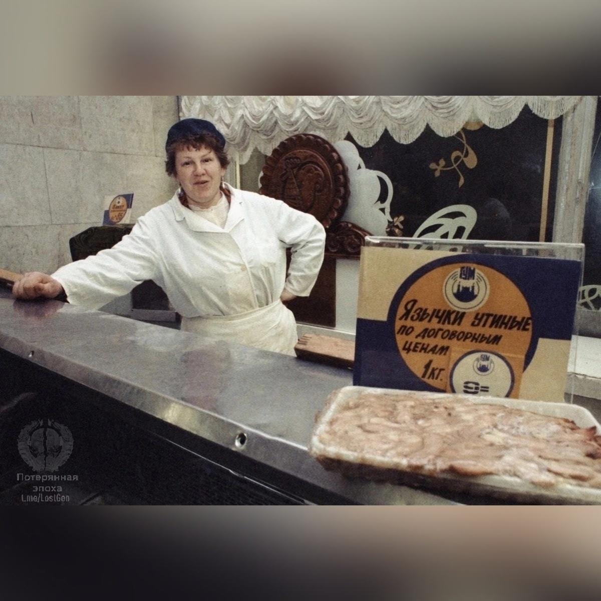 Затем перед нами предстаёт необычная сцена 1990 года: торговля утиными язычками по договорной цене – живой пример развития частного предпринимательства.