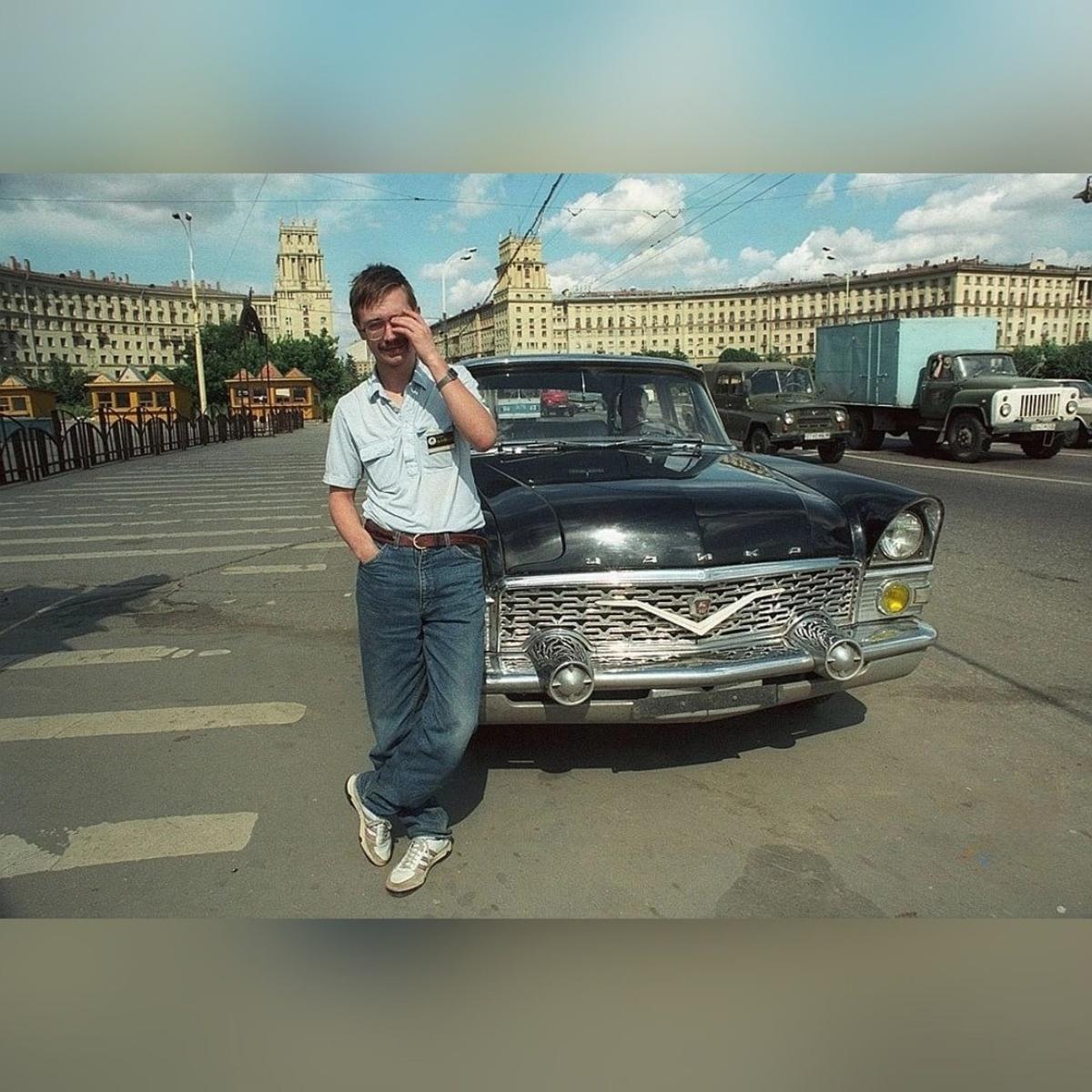 Следующая фотография, датированная 1992 годом, вызывает особый интерес: Герман Стерлигов на фоне автомобиля «Чайка», приобретённого им в гараже Брежнева – яркое свидетельство перемены властных структур и нового распределения собственности.