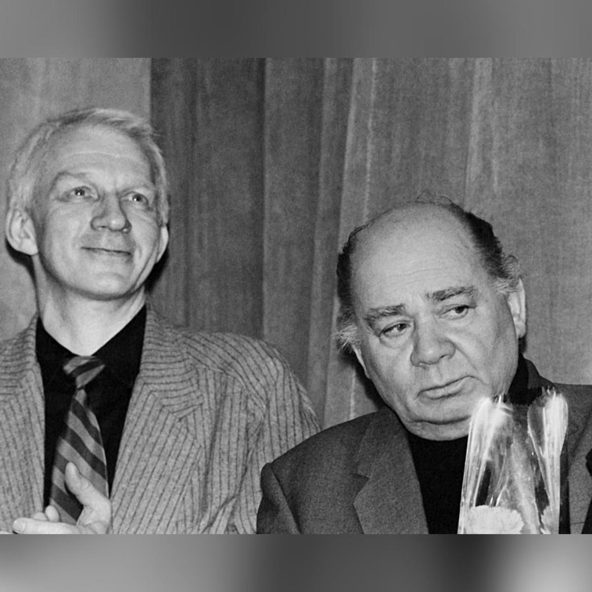 Ещё одна фотография знакомит нас с Владимиром Носиком и Евгением Леоновым на премьере фильма «Американский дядюшка» в 1993 году, показывая влияние западной культуры на отечественный кинематограф.