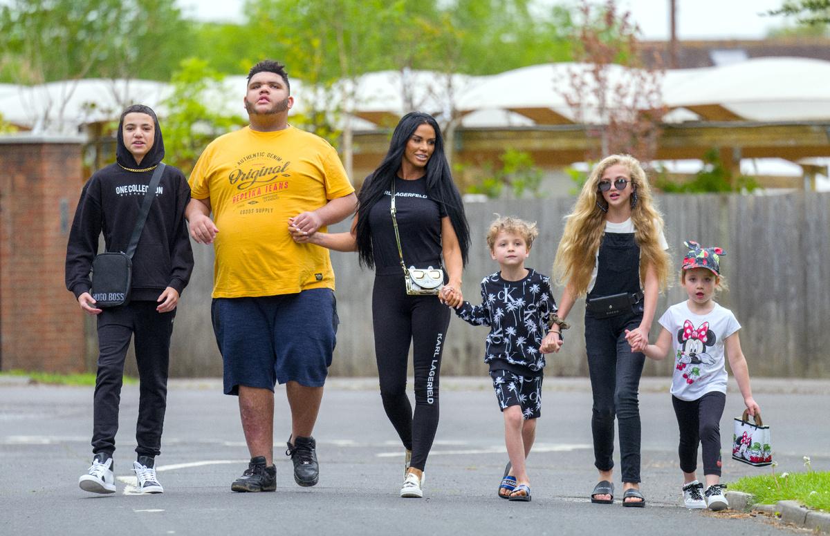 Первого ребёнка Кэти родила в 2002 году от футболиста Дуайта Йорка, с которым она состояла в непродолжительных отношениях. Во время беременности у неё диагностировали лейомиосаркому мягких тканей пальца правой руки, лечение которой повлияло на течение беременности и у старшего сына модели, Харви Дэниела Прайса (см. фото выше), есть несколько серьёзных отклонений, в том числе и аутизм. Воспитание ребёнка полностью легло на плечи юной матери, отец же отказался от него и в судебном порядке была экспертиза ДНК, подтвердившая отцовство и были назначены алименты.