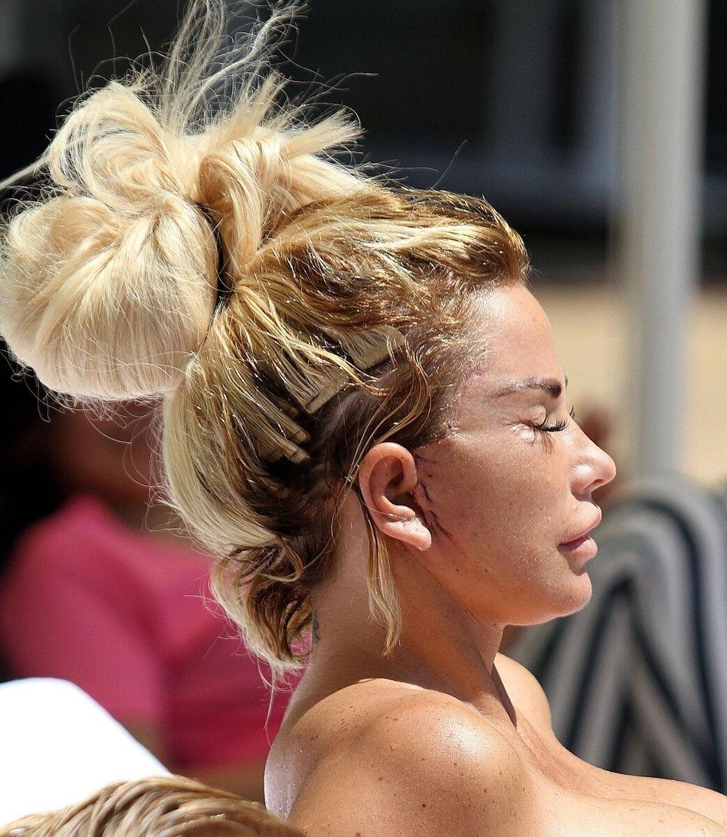 В любом случае, сейчас Кэти стала вести себя более спокойно, но от её яркой и эффектной красоты ничего не осталось. Английской телезвезде всего 46 лет, но выглядит она на все 60, что не может не привести в некий ступор! Её не спасают даже наложенные фильтры и использование фотошопа, и от Кэти Прайс отвернулись многие поклонницы и особенно поклонники. Сейчас эта женщина чаще всего вызывает даже не осуждение, а жалость. Ну зачем она так с собой?