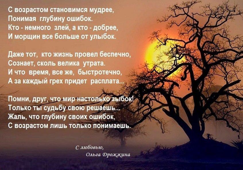 А тем, кто молод, да и не только, стоит прислушаться к стихотворению Ольги Дрожжиной и просто знать о простой жизненной истине: