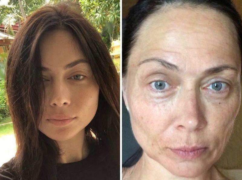 Настасья Самбурская. Современная певица Самбурская имеет яркую красивую внешность. Но на фото, прямо скажем, она поувяла. Хотя в целом изменения выглядят правдоподобно: если не ходить к косметологу и не особо следить за кожей, в пожилом возрасте она будет выглядеть примерно так. Самбурская с юмором отнеслась к своему преображению. «Одинокая пенсионерка 57 лет. Рост 178. Грудь 3 размера. Ищу мужчину, 60+ для совместного проживания. Иногородних и пьющих прошу не беспокоить», — с такой подписью она выложила фото на свою страницу.