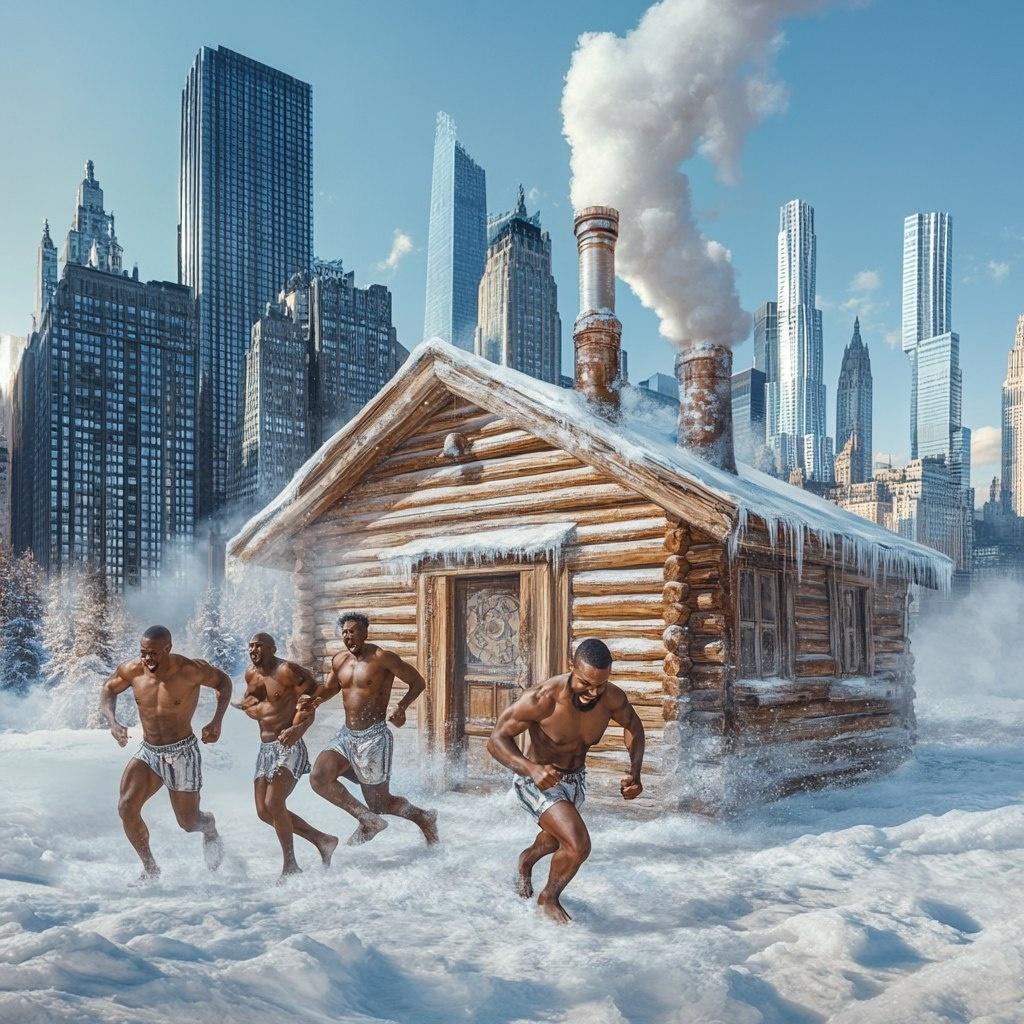 Первое фото самое ржачное)) Несколько негров выбежали из баньки обтираться снегом. Всё выглядит натурально, не правда ли?)