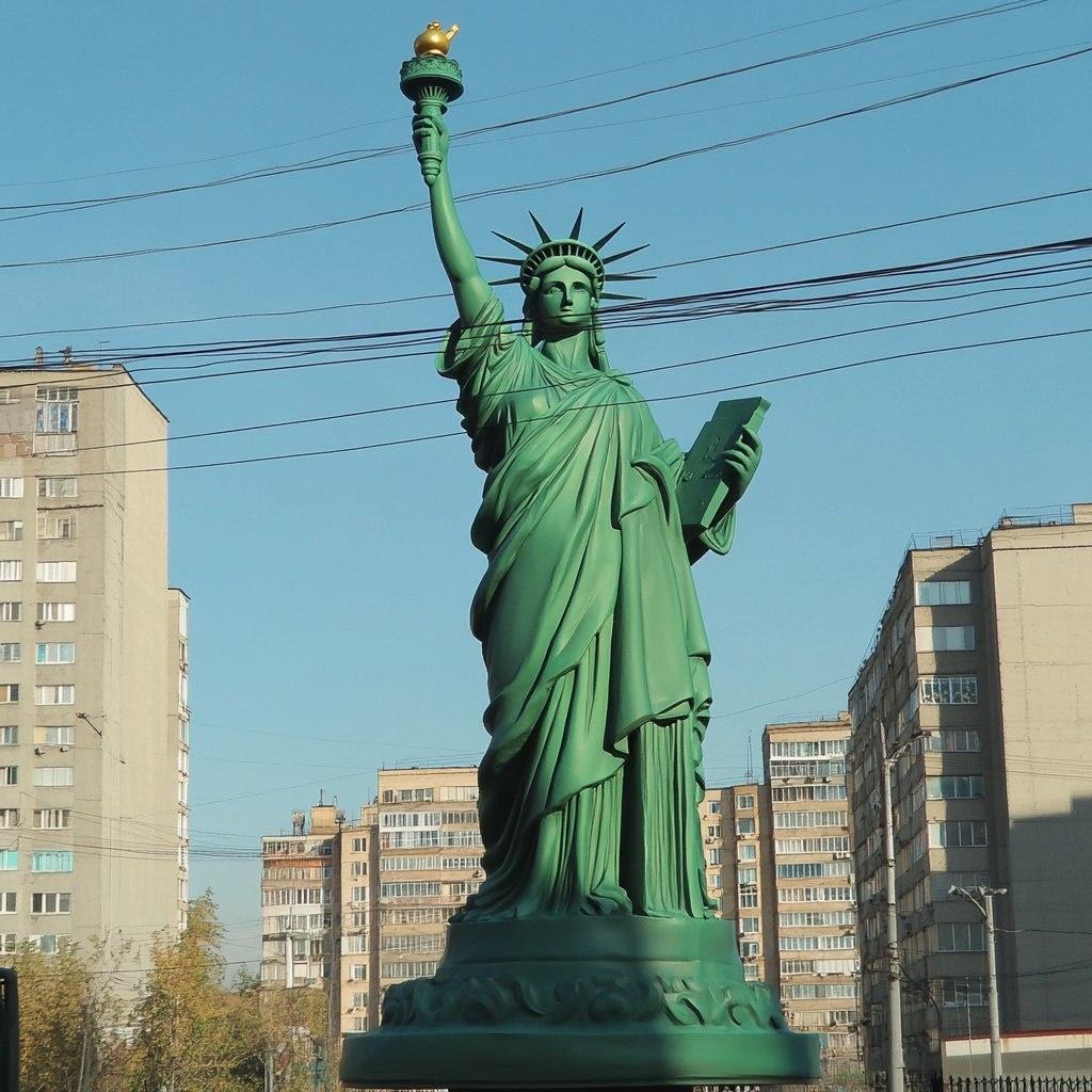 Рашн-версия статуи свободы, если бы она стояла в типичном городе России среди панелек.