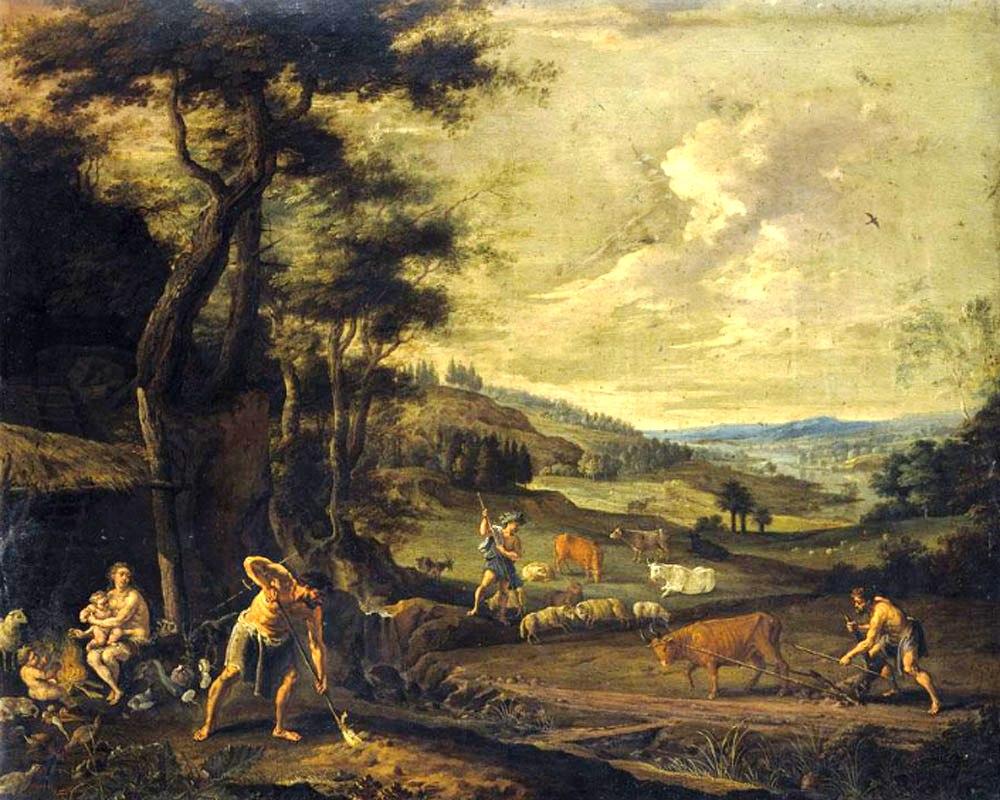 Лишившись своего блаженного жилища, прародители поселились к востоку от Эдема. Там начались первые трудовые будни, и там же явилось на свет первое поколение «рожденных» людей.