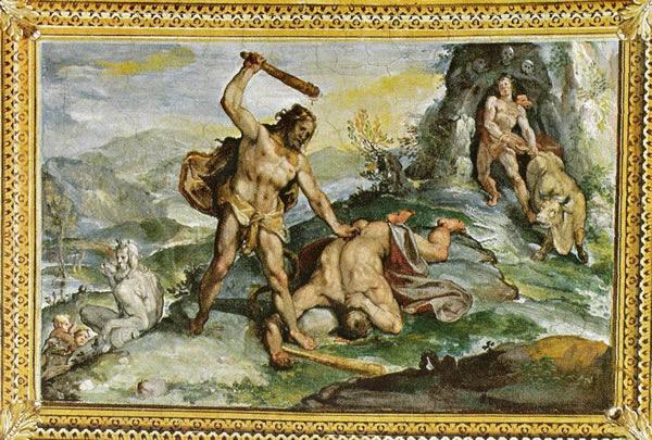 Поэтому художники были совершенно свободны в выборе атрибута. Первое, что отметим: на картинах Каин не убивает брата голыми руками — художник обязательно рисует какое-нибудь орудие.