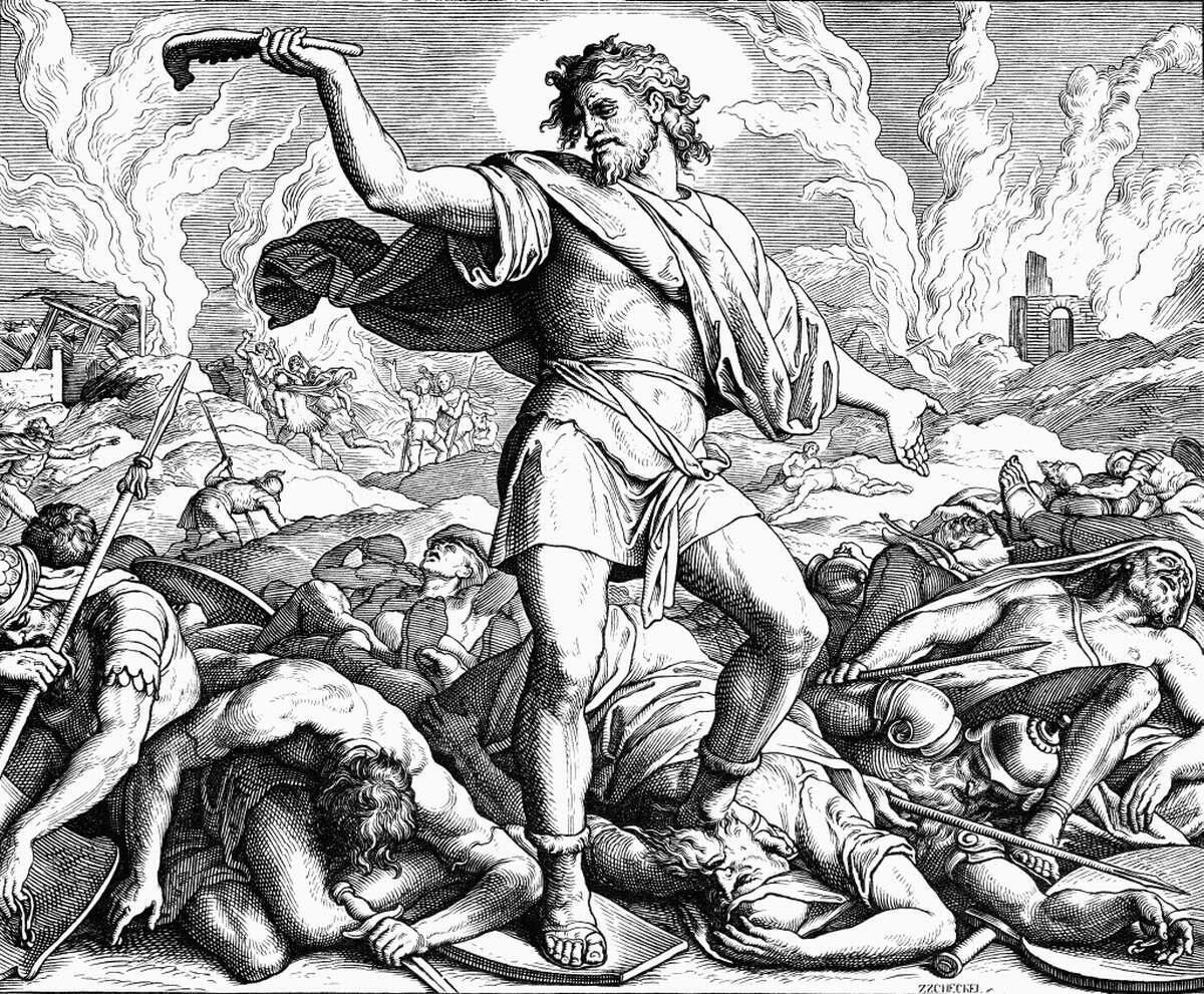 Как и почему возникла такая версия об орудии убийства — непонятно. Но в челюсть осла встречается не единожды: ею Самсон убивал врагов.