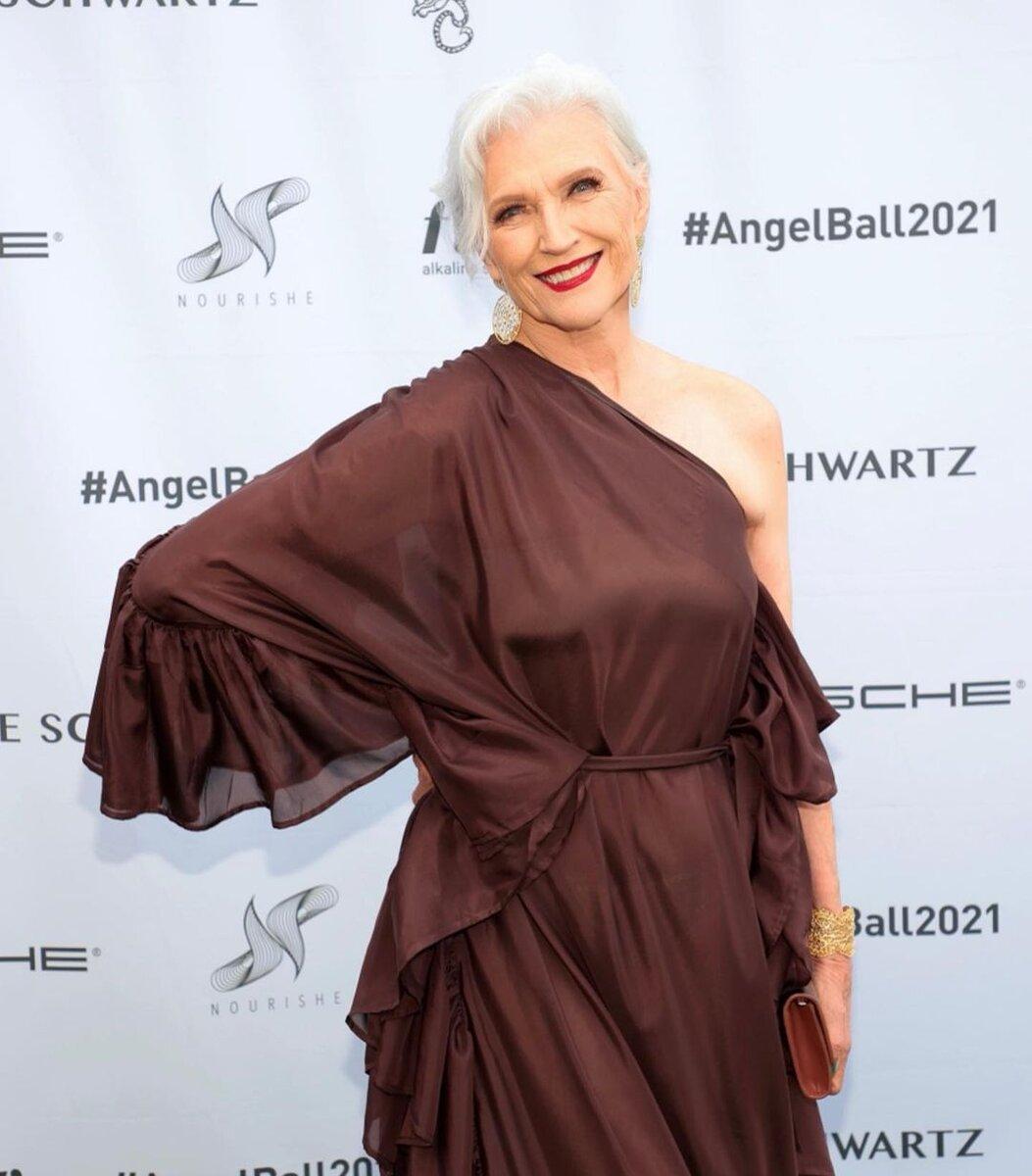 Мэй Маск свободна от предрассудков и совсем не стесняется своего возраста. Поэтому в свои 73 года она красится яркой помадой, встаёт на высокий каблук и с легкостью открывает глубокое декольте, которое выглядит красиво, а не вульгарно.