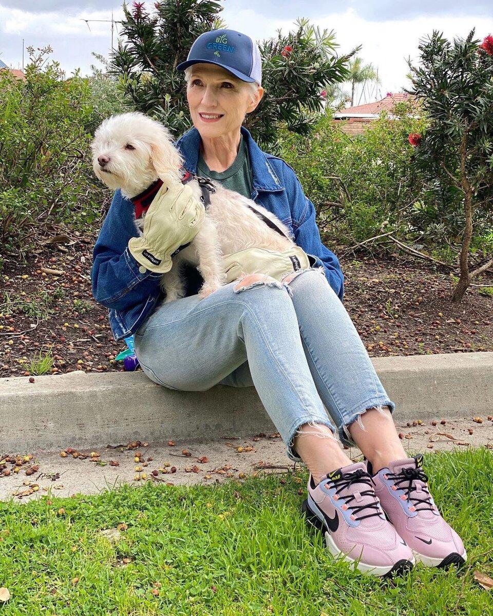 Несмотря на активную социальную жизнь, Мэй Маск носит не только грандиозные платья сложного кроя и туфли на каблуке. Низкий ход и свободные силуэты встречаются в ее гардеробе не реже, ведь расслабляться тоже нужно. И, несмотря на то, что многие дамы 70+ уверены, что классика – единственный возможный стиль для их возраста, Мэй рушит этот стереотип.