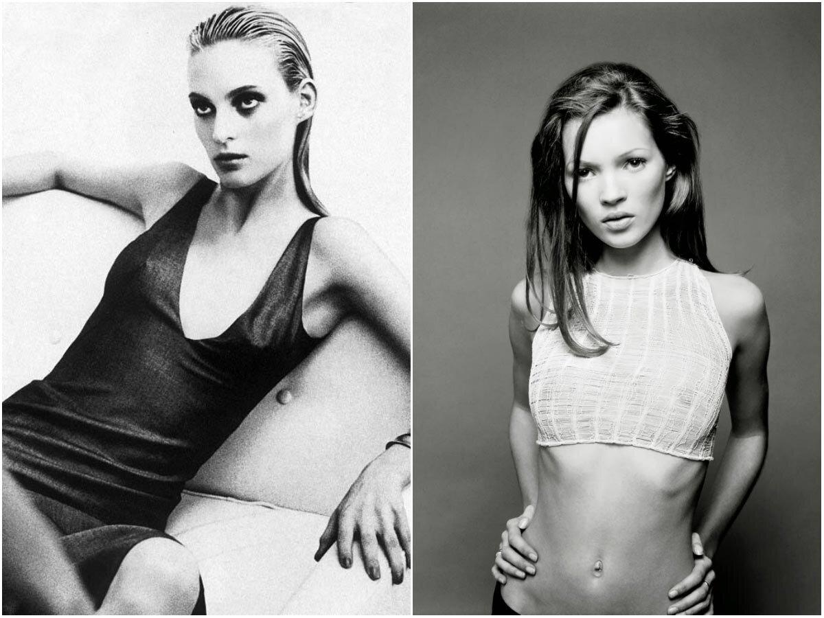 Время появление первых топ-моделей – идеалов красоты, до которых не дотянуться. Идеальные фигуры – стройные с длинными ногами, начинается культ знаменитых 90-60-90.