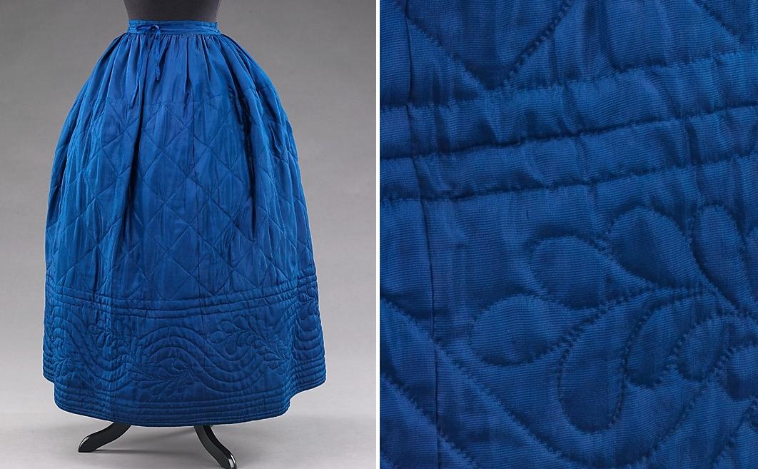 А стёганые юбки? В XIX веке их носили в качестве нижних, а в XVIII с удовольствием и напоказ выставляли. Они и красивые, и тёплые. Словом, отличная вещь. Этакое одеялко-которое-я-ношу-с-собой.