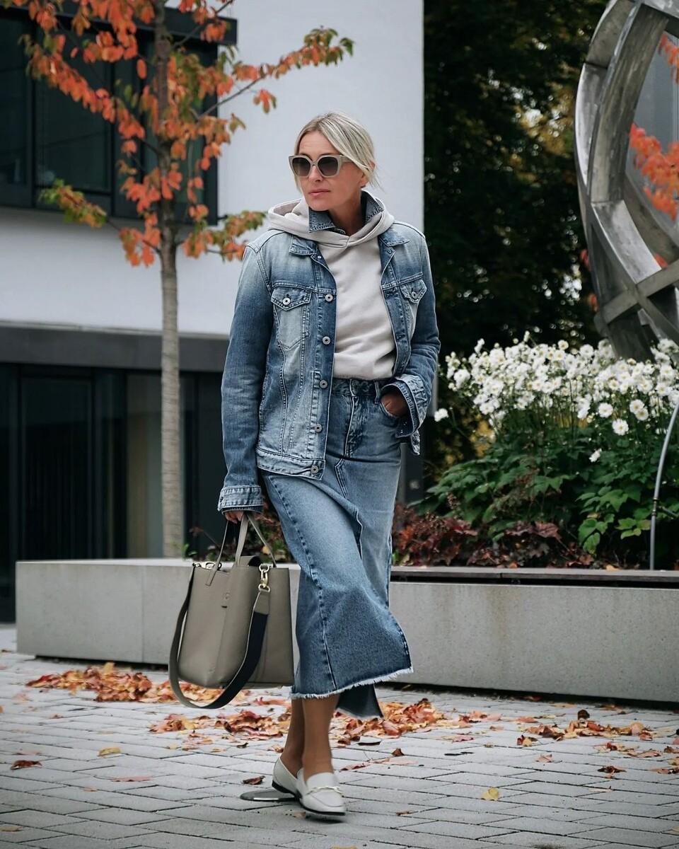 Откажитесь от мешковатой одежды: Она делает фигуру визуально шире и добавляет возраста. Носите умеренный объем для комфорта – для того, чтобы можно было надеть дополнительный внутренний слой, если станет холодно.