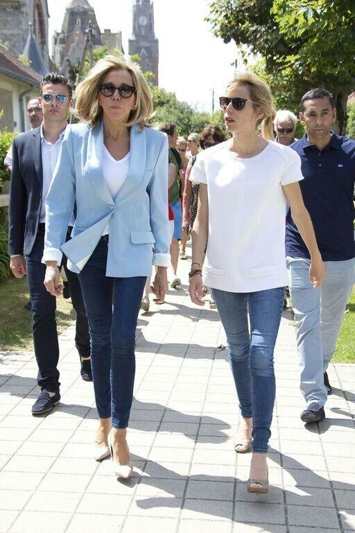 Посмотрите на Бриджит Макрон, супругу французского президента. Как удачно она обыгрывает цветом одежды свои недостатки (фигура, лицо, возраст)! Кстати, она довольно часто надевает синий и розовый именно в пастельных вариантах, и это ее омолаживает. Напомню, она сильно старше своего супруга.
