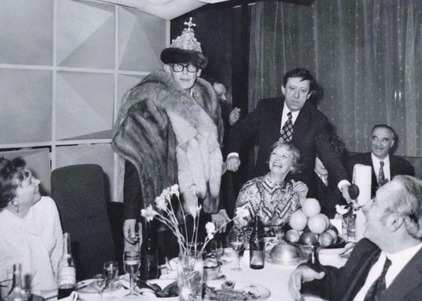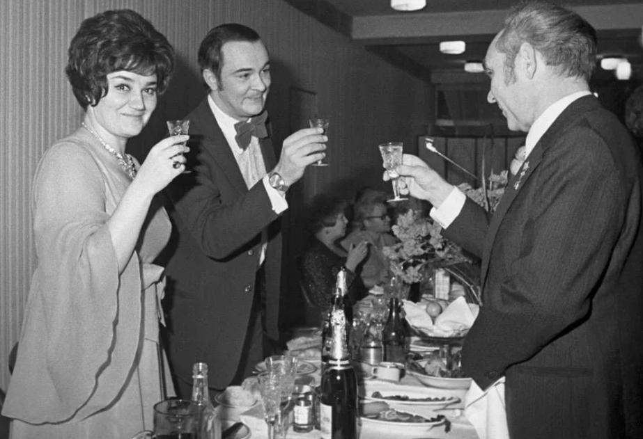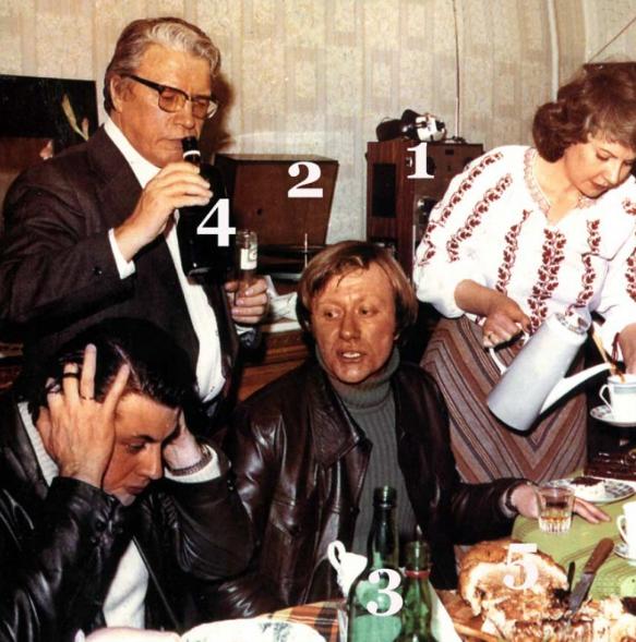 Гайдай с супругой, Никулин, Этуш … На столе шампанское, коньячок, водочка, фрукты и легкая закуска…