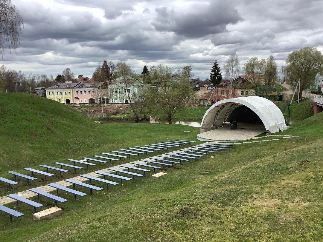 Летняя сцена в овраге для проведения праздников на свежем воздухе. А фестивалей здесь хватает. Так, с 2017 года в Вятском проживает оперная певица Любовь Казарновская и проводит фестиваль «Провинция — душа России».