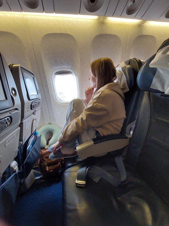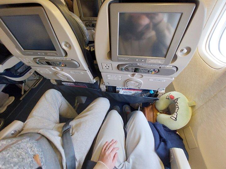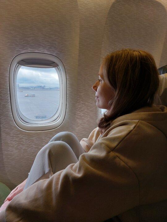 Как уже говорили, в полёте нам давали пледы и подушки. В целом температура была комфортная, нигде не дуло, мы не мёрзли.