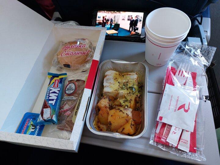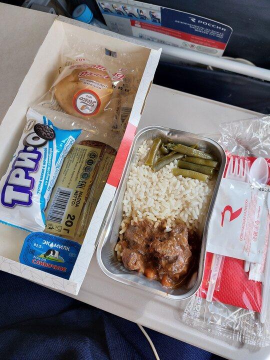В полёте кормили 2 раза горячим питанием. Удовольствия от еды не получили, но голодными не остались.