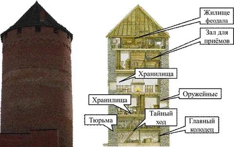 Замок X-XI веков скорее напоминает укрепленный лагерь. В центре обнесенного рвом и валом с частоколом пространства располагался донжон — центральная башня, которая являлась не только оборонительным сооружением, но и использовалась как жилье. Остальные строения средневекового замка (склады для инвентаря и фуража, конюшни, залы для пиршеств, кухня) в случае серьезной опасности попросту уничтожались, и обитатели замка укрывались в донжоне, чтобы выдержать долгую осаду.