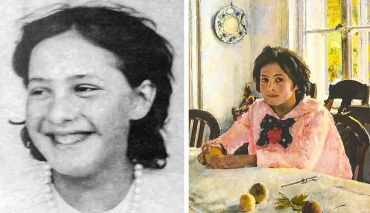 Вера Мамонтова – дочь знаменитого купца и промышленника Саввы Мамонтова. На этой картине и на фото ей 12 лет. Как вспоминал художник Серов, убедить девочку сидеть неподвижно, когда на дворе яркий солнечный день, было непросто. Пришлось приезжать в гости к Мамонтовым несколько раз. Умерла от острой пневмонии в возрасте 32 лет.