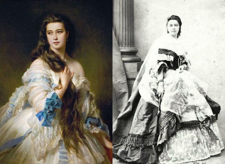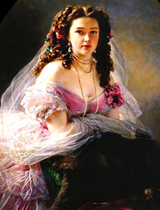 «Венера из Тартарии» – так называли современники эту московскую красавицу за ослепительную внешность. На этом портрете кисти Винтерхальтера ей 18 лет, и она уже давно носит негласный титул королевы балов. За её смелые наряды её иногда выводили с балов за «непристойность». Вот пример «непристойного» платья:).