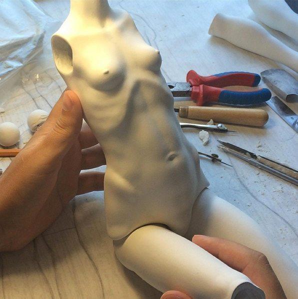 Затем художник создает тело. Благодаря особой технологии, части тела куклы очень подвижны.