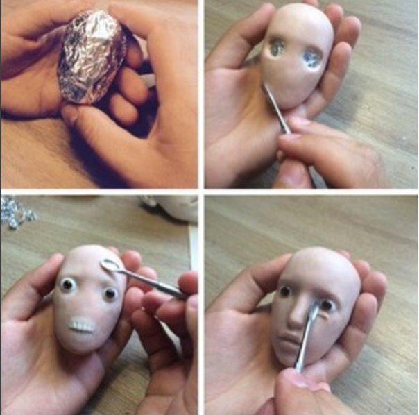 Особое внимание мастер уделяет голове и лицу своего творения. На этой фотографии кукла все еще выглядит “кукольно”, как инопланетянин. Но скоро дело примет серьезный оборот…