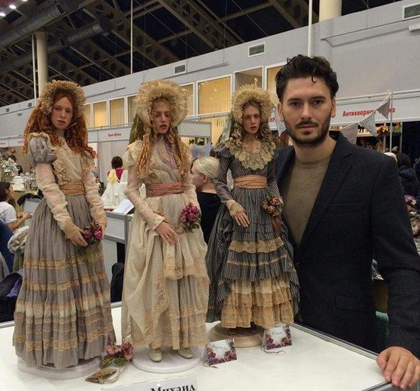 Соединить все детали вместе Михаилу не составляет труда. Одежду куклам художник шьет сам из шелка, батиста и античных кружев. Крошечные туфельки мастер делает из кожи. Наряды кукол в основном выдержаны в стиле начала 20 века.
