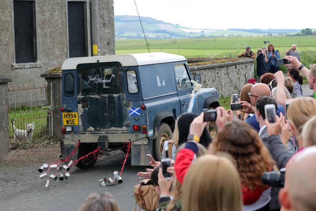 На свадьбу было приглашено 200 гостей, в том числе и коллеги по съёмочной площадке сериала, а жених и невеста покинули церемонию не на лимузине, а на милом голубом Land Rover Defender 90, украшенном лентами и надписью молодожёны на радиаторной решётке.