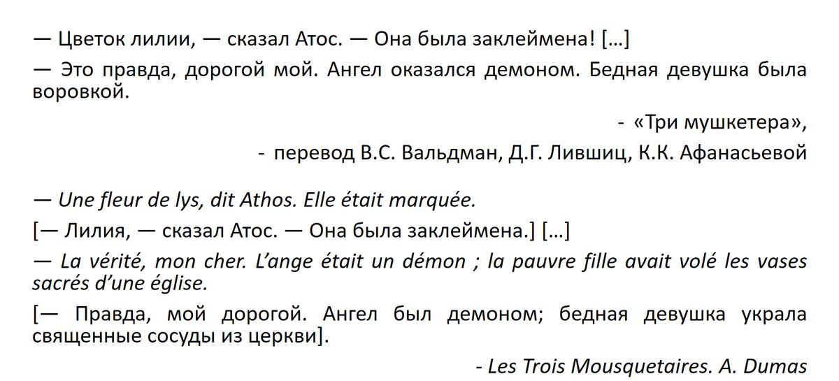 «— Цветок лилии, — сказал Атос. — Она была заклеймена! […] Ангел оказался демоном. Бедная девушка была воровкой».*