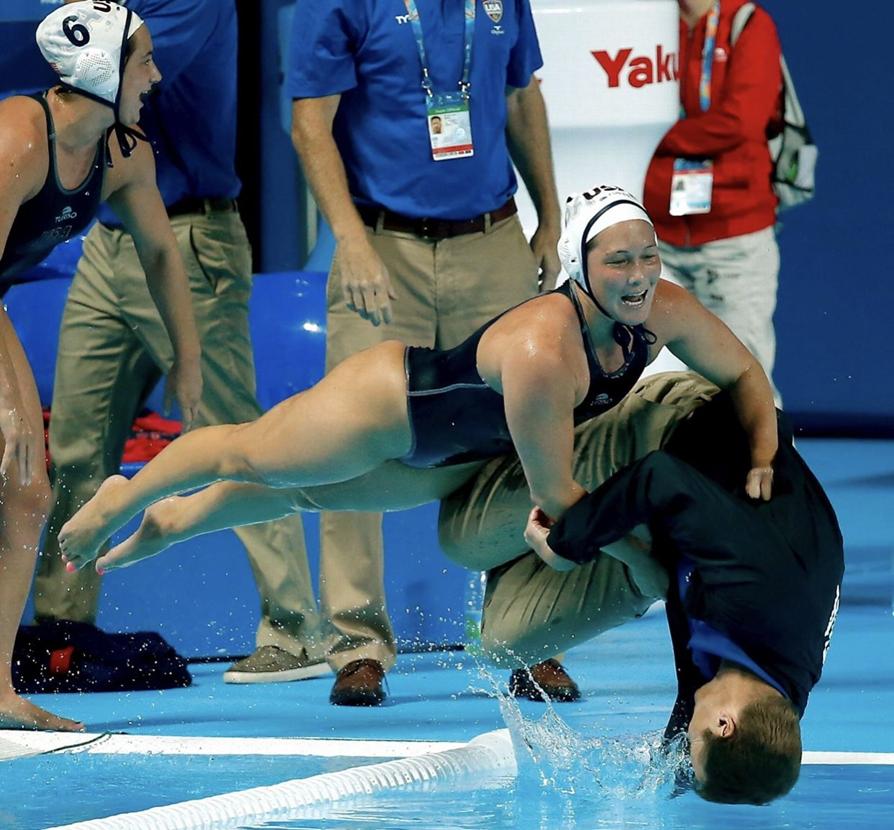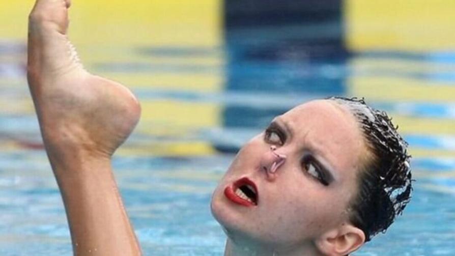 Сложно описывать этот кадр корректно. Конечно, в кадре ничего противоестественного не происходит — самая обычная ситуация в синхронном плавании.