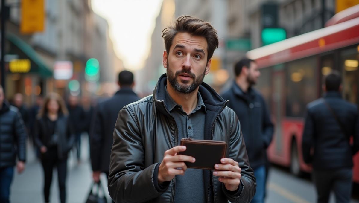 Вдруг он увидел как не далеко от автобусной остановки лежит что-то чёрное. Присмотревшись, он понял —это кошелёк. Люди проходили мимо, никто не обращал внимания. Он наклонился, поднял его и открыл. Деньги, карты, водительские права. На фото мужчина лет пятидесяти с добродушным, но усталым лицом.