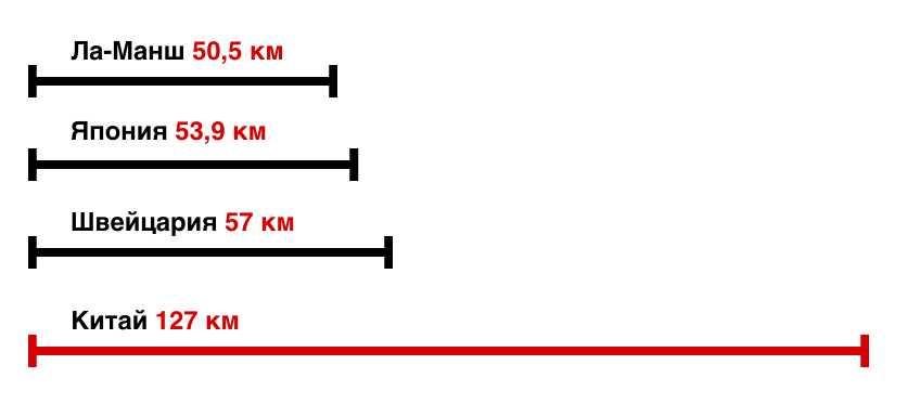 Так вот, Китай приступил к строительству тоннеля, который более чем в два раза превысит длину швейцарского варианта (около 127 километров).