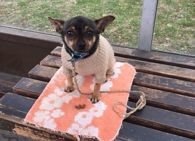 На остановке прохожие увидели маленькую собачку, которая сидела на одном месте и смотерла испуганным взглядом на всех вокруг. Животное было в ошейнике, с поводком и даже ковриком, чтобы не замерзали лапки.